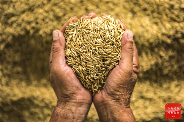 农民手捧收获的稻谷,金灿灿的谷粒承载着他们一年的辛勤劳动和对美好生活的向往。(贵州省遵义市汇川区纪委监委供 黄钰林 摄)