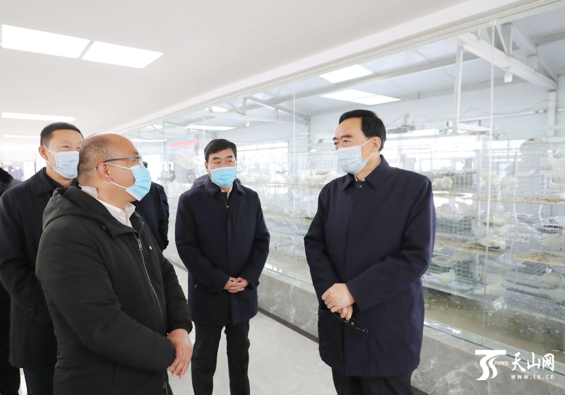 12月5日至6日,自治区党委书记陈全国在和田地区调研。这是12月5日,陈全国来到于田县万方硒鸽实业有限公司详细了解扶贫产业发展和带动农户就业增收等情况。 记者 崔志坚摄