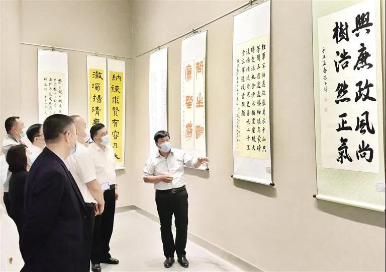 州书法家协会名誉主席范钦生、州书法家协会主席赖泽宏在活动现场分别题字“廉洁梨城·止耻尚荣”和“清风巴州·明理崇德”,与会同志参观了红色廉政书画展。