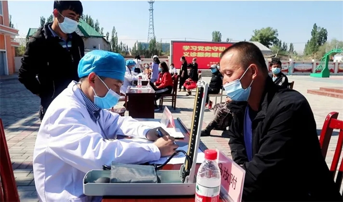 近日,伊犁州纪委监委邀请察布查尔县人民医院专家,在察布查尔县海努克镇海努克村举办了“学习党史守初心、义诊服务献爱心”活动,旨在把党史学习教育的成果转化为为民办实事的实际成效。(伊犁州纪委监委 张涛 摄)