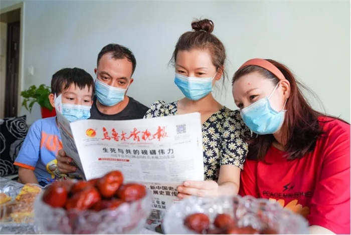 在“我为群众办实事”活动中,乌鲁木齐市纪委监委突出政治担当,发挥纸媒宣传引领作用,进一步推进党史学习教育全覆盖。图为该市纪委监委干部向社区居民赠阅报纸,同群众一起读报纸,了解身边事。(乌鲁木齐市纪委监委 任志豪 摄 )