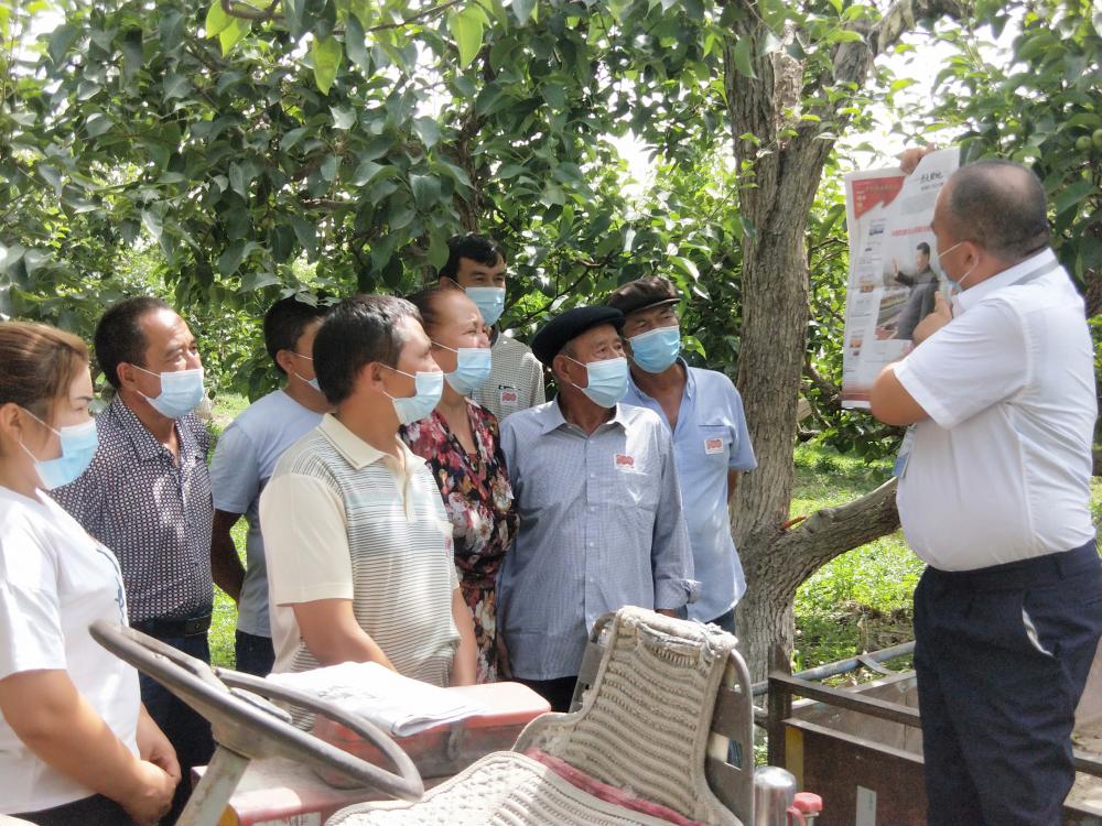 库尔勒市和什力克乡纪委干部下沉一线,在田间地头向群众宣传学习习近平总书记在庆祝中国共产党成立100周年大会上的重要讲话精神,将大会精神传递到每一名群众的心坎上。(库尔勒市纪委监委 徐凯 摄)
