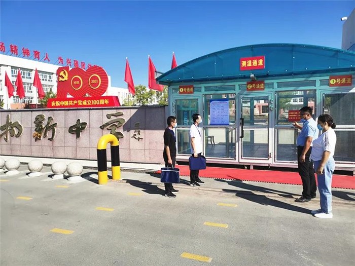 新源县纪委监委对学校门口测温点实地查验,对发现的风险隐患督促学校立行立改,织密织牢校园“防疫网”。(陈思熠 摄)