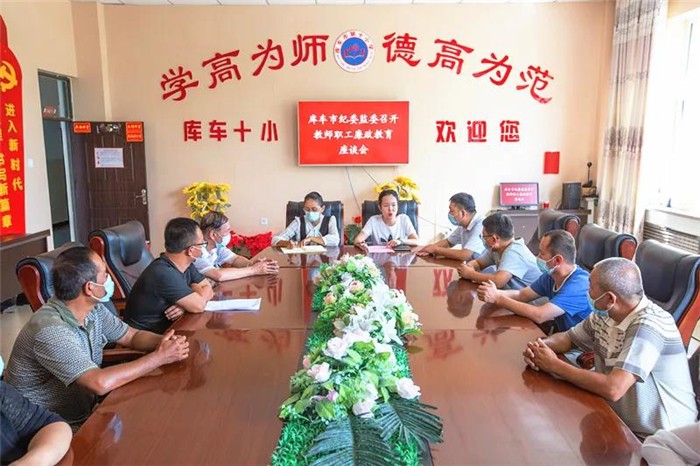 库车市纪委监委召开座谈会,对推进“双减”工作强化督促检查,助力营造风清气正、公平公正的良好教育环境。(袁欢欢 摄)