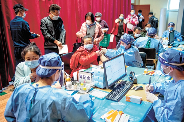 为进一步加固免疫屏障,北京市昌平区推进新冠疫苗加强针接种工作。图为10月23日,市民在昌平区城北街道永安活动中心临时接种点接种。 新华社记者 陈钟昊 摄