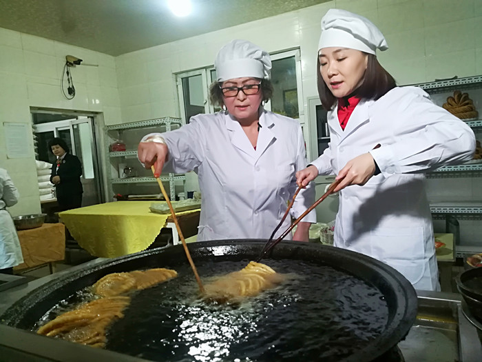 喜迎新春,维吾尔族同胞们为汉族群众制作香甜可口的特色美食—馓子,以庆祝节日的到来。