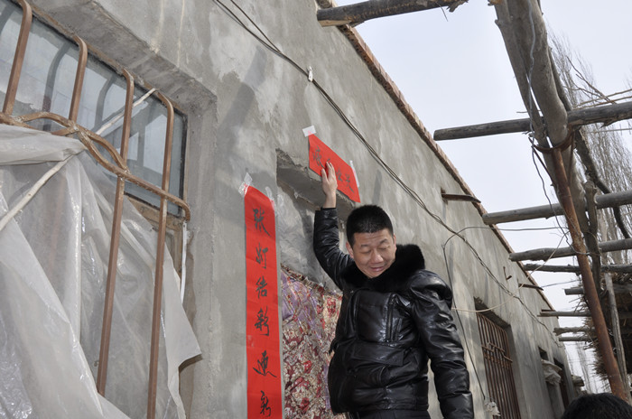 州纪委副书记尼加提·尼亚孜和亲戚王金远贴完春联合影留念