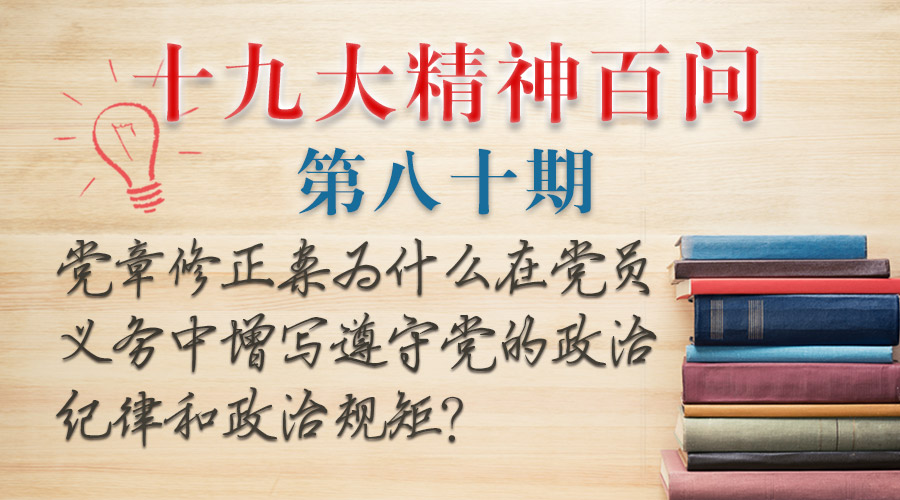 党的十九大党章修正案在党员义务中增写自觉遵守党的政治纪律和政治规矩的内容,这对于加强党的政治建设、思想建设、组织建设、作风建设、纪律建设以及制度建设、反腐败斗争,维护党的团结统一,确保全党统一意志、统一行动、步调一致具有重要意义。