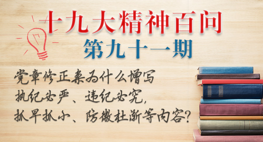 党的纪律是党的各级组织和全体党员必须遵守的行为准则,党组织必须严格执行和维护党的纪律,共产党员必须自觉接受党的纪律约束。党的十九大党章修正案第四十条,在坚持惩前毖后、治病救人原则基础上,增写了执纪必严、违纪必究,抓早抓小、防微杜渐等内容,对于加强新时代党的纪律建设具有重要指导意义。