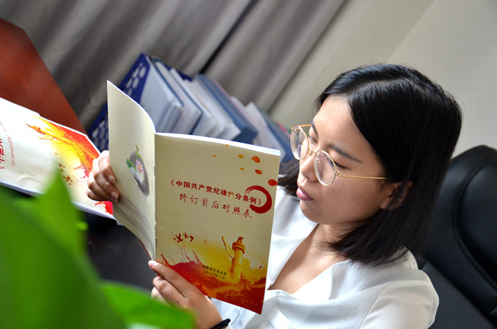尉犁县纪委监委第一时间将新修订的《条例》印发人手一册,做到纪检监察干部先学一步,学深悟透。