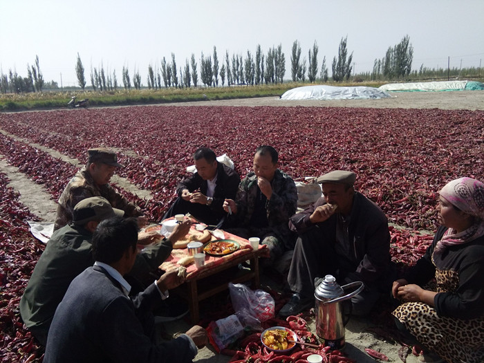 焉耆县纪检干部帮当地百姓晒辣椒——同吃同住同干活