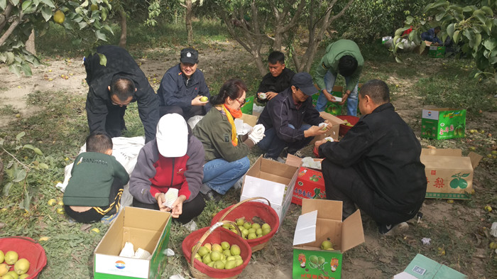 库尔勒市纪委全体干部为贫困户采摘香梨