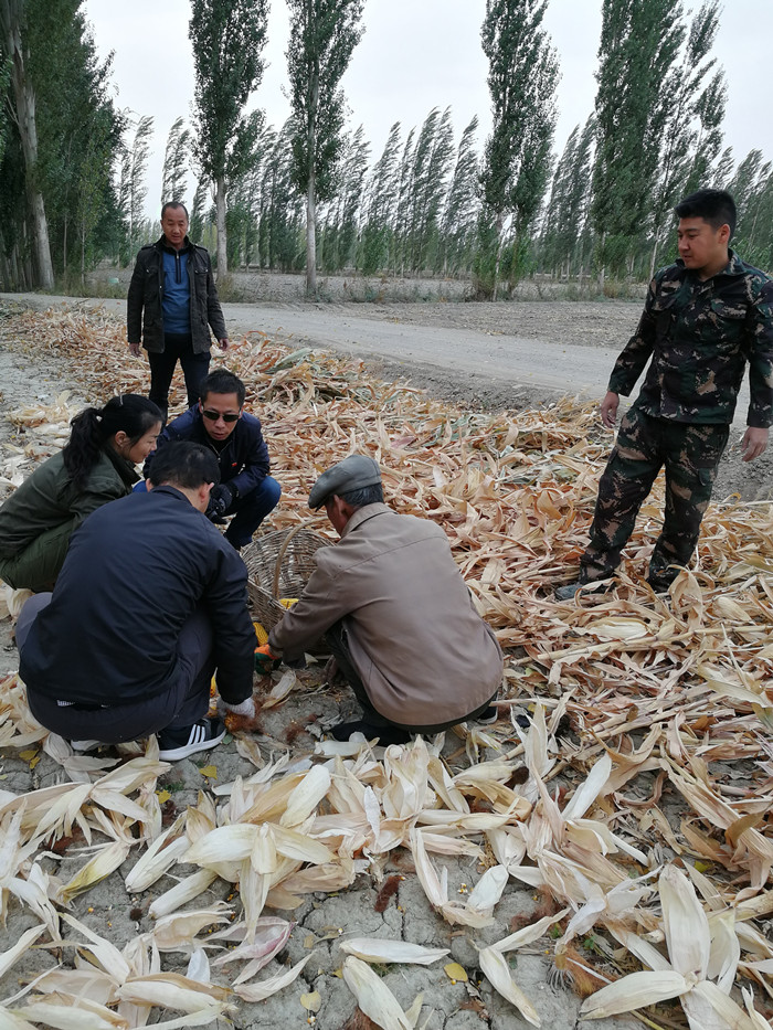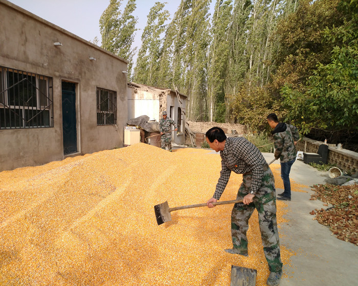 和硕县纪委沉村干部给沙梁湾村结对亲戚晒包谷