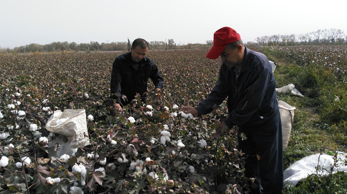 尉犁县纪委干部帮助贫困户采摘棉花