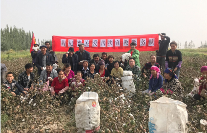 “我们用‘包谷馕’式的语言,在向村民集中宣讲党的惠民政策。”针对农忙时节许多村民在田间劳作、棉花厂务工的实际情况,尉犁县纪委党员干部采取送服务的形式,适时把宣讲课堂、谈心场所搬到田间地头、村道、工厂,帮助村民拾棉花、装卸棉包、联系拾花工,同基层百姓“同吃、同住、同劳动”。