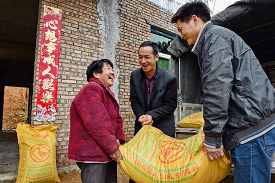 福建省永泰县新丰村党员干部为精准识别扶贫户送去鸡鸭饲料。