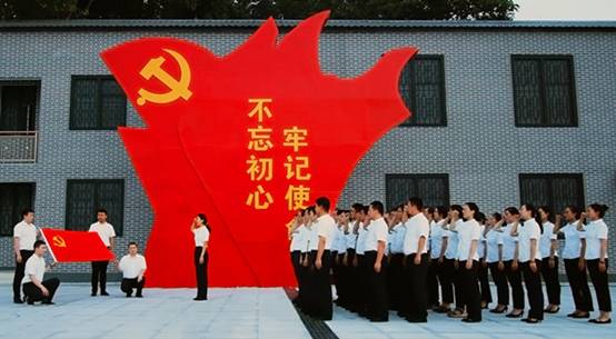 河南省漯河市郾城区纪委监委全体党员干部向党旗庄严宣誓,重温誓词,让党员干部们不忘初心,牢记使命,坚持以人民为中心,做党的忠诚卫士。