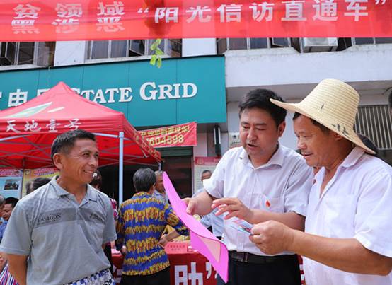江西省宜黄县纪委监委组织各级纪检监察干部深入机关、农村、社区、学校、医院、企业和网络开展阳光信访宣传直通车“七进”活动,引导群众依法、有序、有效举报,让民情和民声有效传达。