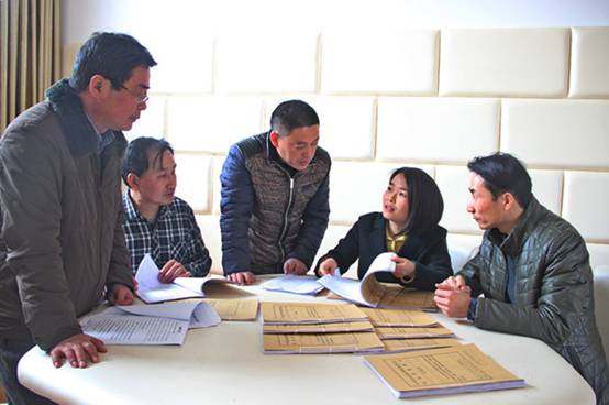 杭州市临安区於潜镇的基层干部到该镇的光明村农场向农户了解秋季增收情况,并带去新的惠农政策。