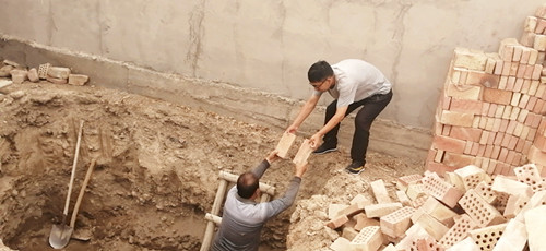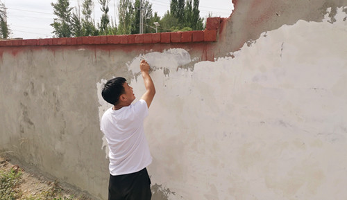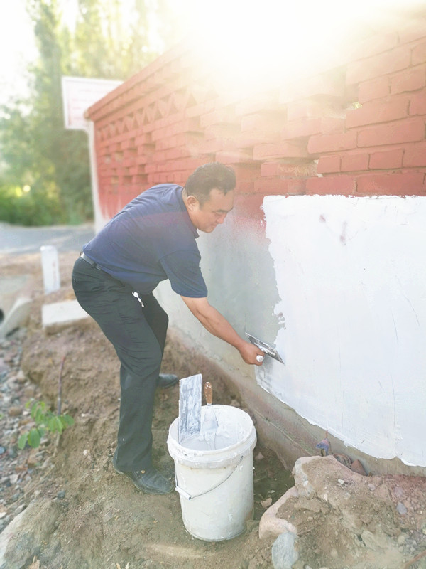 结亲干部白忠东、肖凯成在得知艾则孜·戈力家院墙及厕所改造因经济拮据,迟迟未能完成的情况后,决定出资1200余元帮助购买涂料及厕所改造所需材料,亲自规划实施,并找来结亲干部山曹克图、秦坤、侯江华、李浩、王声等人与亲戚一同砌院子刷墙。短短三天时间,艾则孜·戈力家的院墙已经焕然一新。