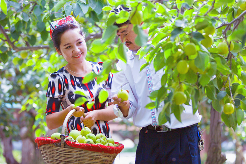 9月的新疆,瓜果飘香,硕果累累,而素有“梨城”之美誉的库尔勒,最具代表性的水果——香梨,迎来了全面采摘期,农民们享受着丰收的喜悦,梨园一派收获繁忙景象。
