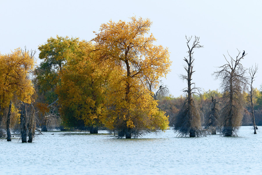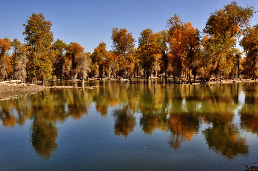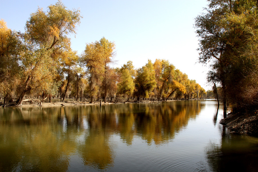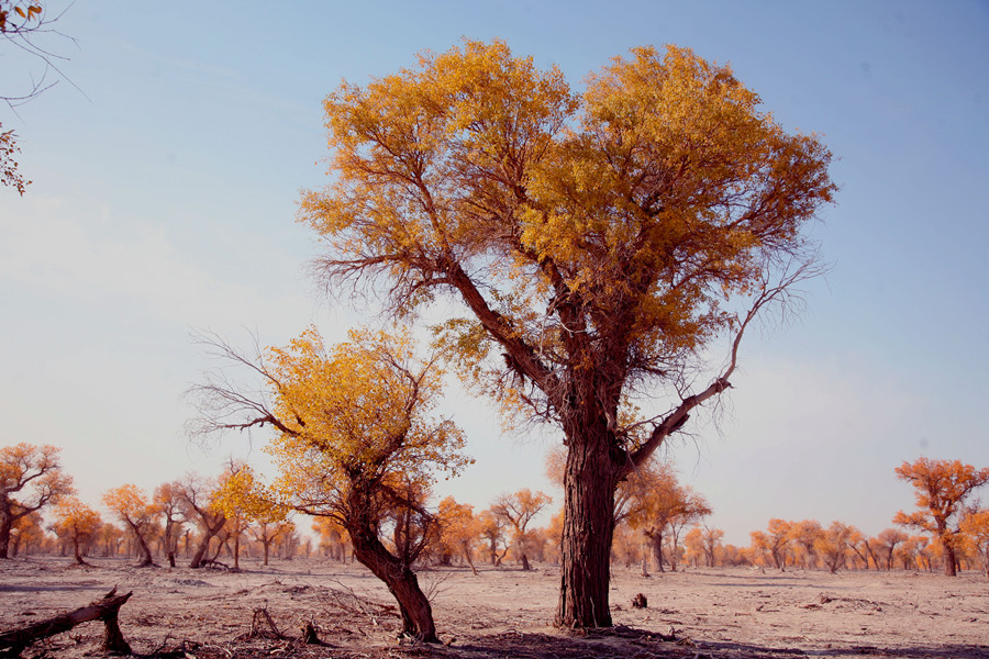 新疆轮台胡杨林是中国最美的十大森林之一,大面积的胡杨林与河流、沙漠、戈壁、绿洲、沙湖、古道及荒漠草原融为一体。