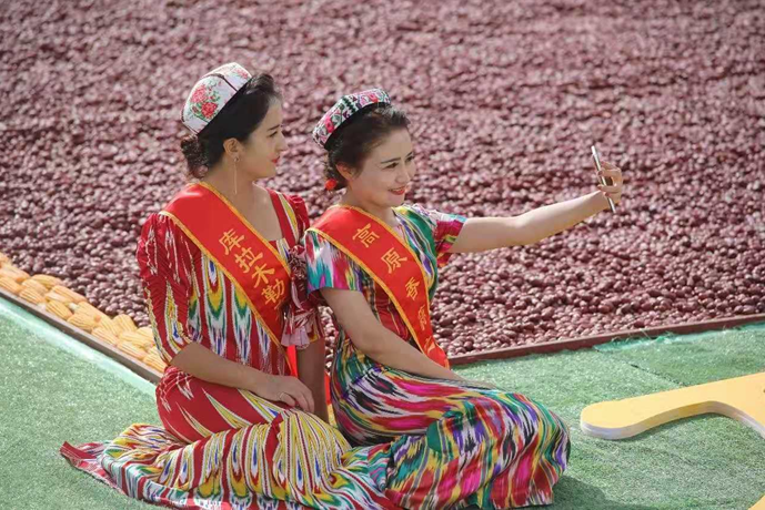 喜气的红枣节里,人们欢庆在一起。