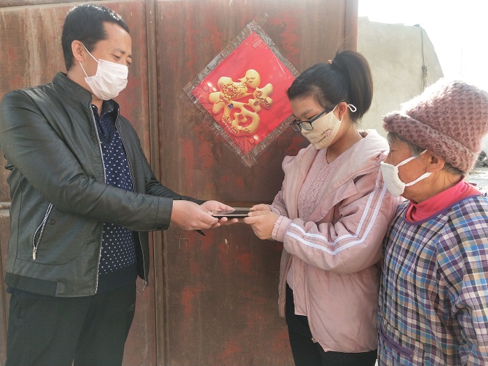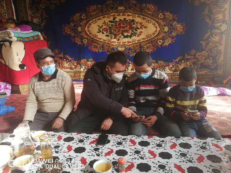 “你好,我是博湖县查干诺尔乡纪检干部,你们家3个孩子,网上授课能否顺利进行?生活上有没有什么困难?”