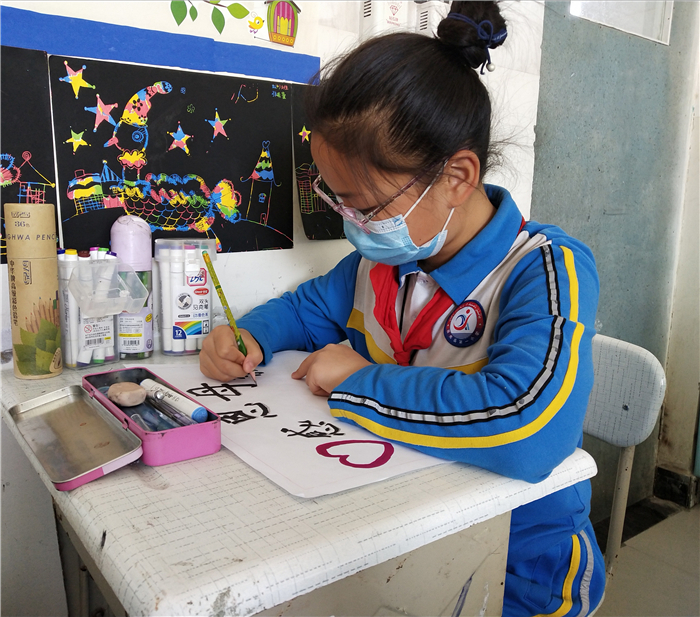 若羌县第一小学的学生在绘画课上为即将到来的母亲节准备“小惊喜”,一笔一划诉说着对母亲满满的爱。