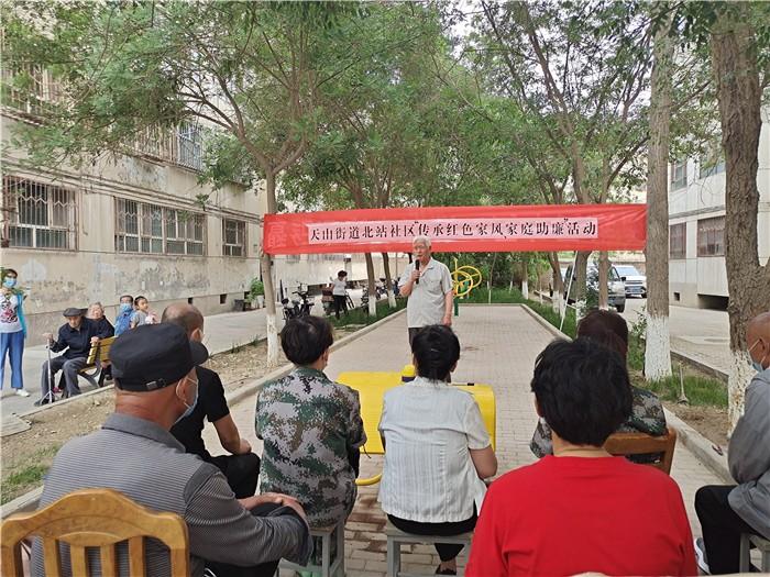 库尔勒市天山街道开展“传承红色家风家庭助廉”活动,邀请辖区老党员讲述身边的家风好故事。(马海霞 摄)