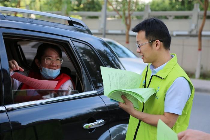 为增强活动效果,库尔勒市纪委监委制作了廉政宣传单。图为该市党员干部在活动期间为市民发放廉政宣传单。(王旗 摄)