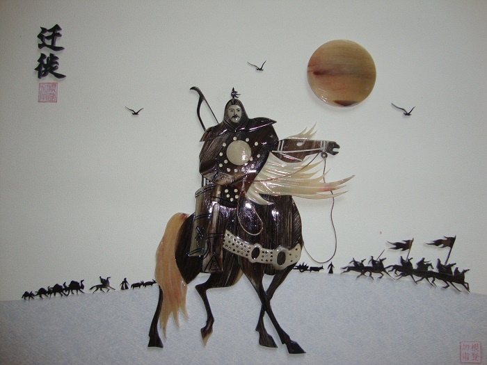 骨雕作品《迁徙》是艺术与历史文化的结合,骨雕技艺与美好的历史寓意结合,栩栩如生,展现了东归壮举,体现了爱国主义精神。