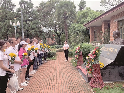 梓潼县利用两弹城独特的历史背景和鲜明的时代文化,将其打造为爱国主义教育基地。图为8月1日,社会各界人士到基地缅怀两弹元勋。王柯利 摄