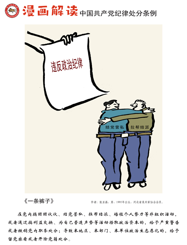 编者按:纪律是我们党的生命线,加强纪律建设是全面从严治党的治本之策。为深入贯彻落实十九届中央纪委四次全会关于加强党纪国法教育的部署要求,强化党规党纪的学习宣传、贯彻执行,使铁的纪律真正转化为党员干部的日常习惯和自觉遵循,中央纪委国家监委网站联合河北省纪委监委,以漫画形式对《中国共产党纪律处分条例》进行解读,陆续连载刊发,敬请关注。