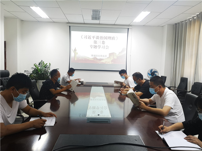 自《习近平谈治国理政》第三卷出版发行以来,库尔勒市纪委监委班子成员通过干部夜校、专题党课辅导、理论中心组学习等多种形式,身先士卒,带头学习。库尔勒市纪委监委负责人蒋威在学习中谈到,要把学习《习近平谈治国理政》第三卷作为坚决做到“两个维护”的实际行动,作为落实全面从严治党主体责任的具体举措,把学习成果尽快转化为决战决胜脱贫攻坚目标任务,全面建成小康社会的强大动力,为库尔勒市纪检监察工作高质量发展提供坚强的思想保证。