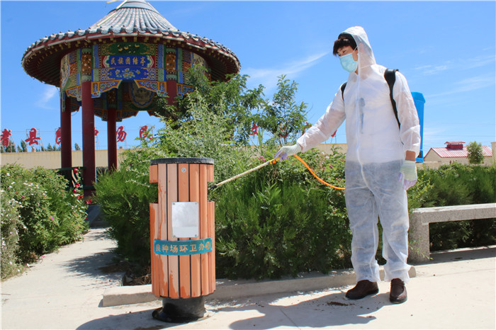 巴州焉耆县返乡大学生积极投身“以爱为名,青春战‘疫’”暑期社会实践活动,主动参与到自己家乡社区的志愿服务中,和社区工作人员一起,将摸底排查、消毒防控、宣传广播、卡点值班等日常工作做细做实。(马晶 摄)