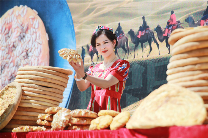 巴州焉耆县四十里城子镇阿克墩村的返乡大学生主动帮乡亲卖富硒馕,一边给馕免费做模特,一边配好文字,在朋友圈推广销售,充分发挥优势,奉献力量,反哺家乡,展示新时代青年的风采。(董基春 摄)(焉耆县纪委监委 贾凤娇)
