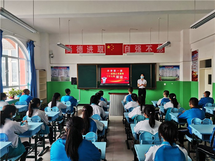有一种深爱,叫“我爱你中国”;有一种骄傲,叫“我是中国教师”,且末县第一中学教师在“开学第一课”的讲堂上慷慨激昂,让爱国情怀厚植于学生的内心。(巴州纪委监委 巴生·达新 摄)